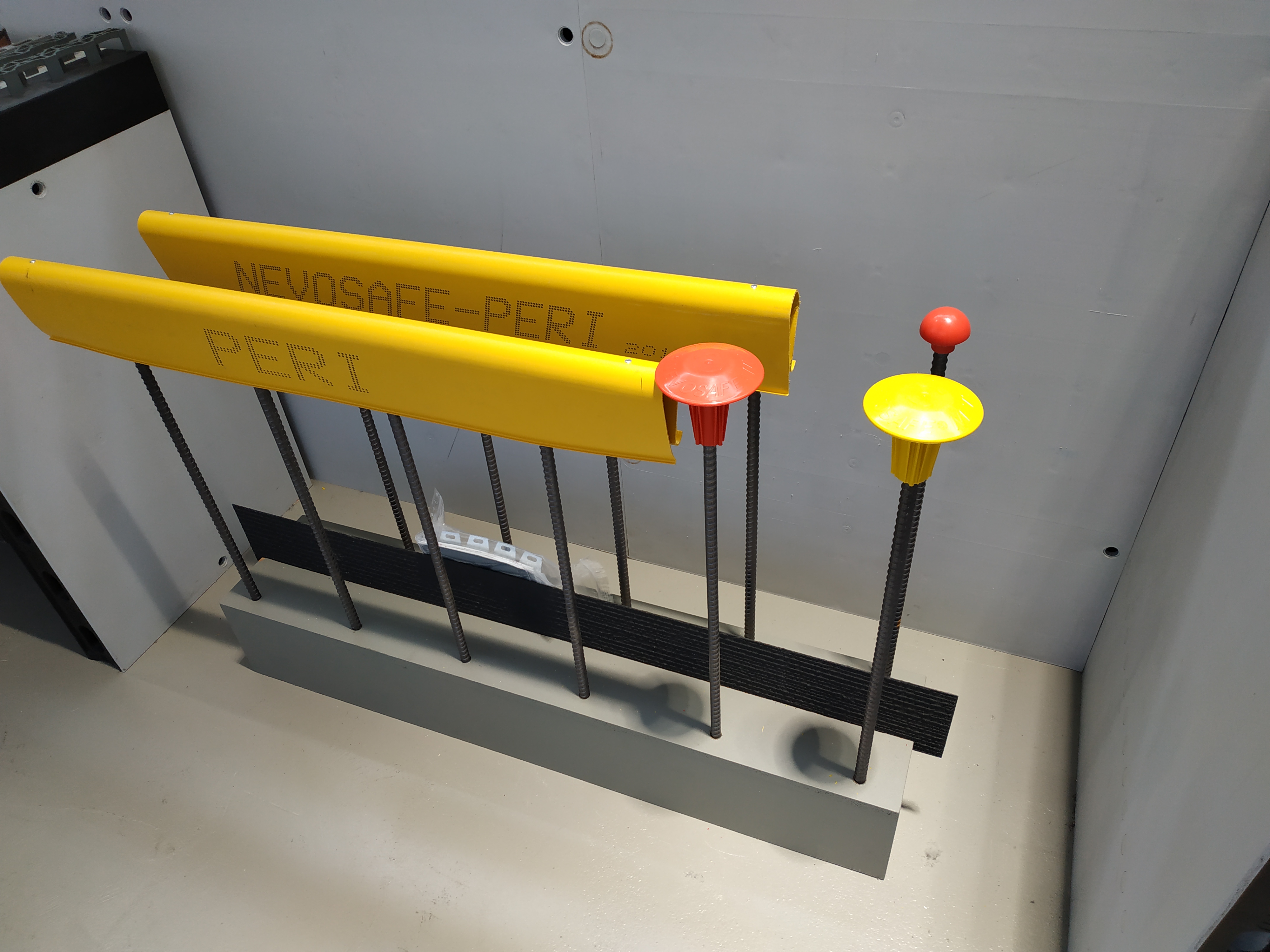 - "Bewehrung: Abdeckschiene mit Stahleinlage und Abdeckkappen" von mebis Tube, lizenziert unter CC BY-SA 4.0