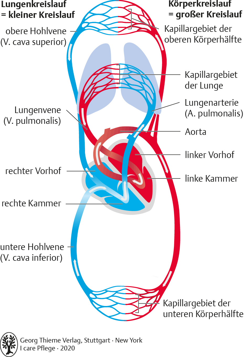I Care Anatomie | Organsysteme | Körperkreislauf und Lungenkreislauf (Grafik)