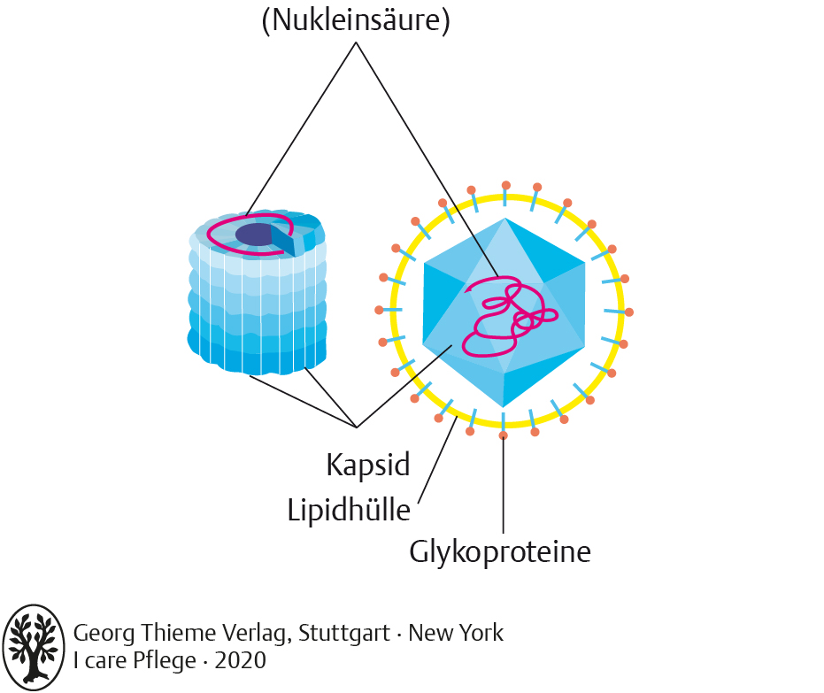 I care Krankheitslehre | Grundlagen | Aufbau eines Viruspartikels mit Hülle (Grafik)