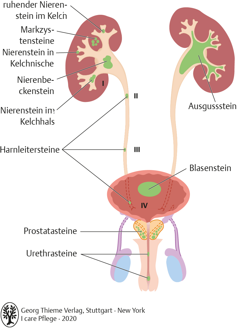I care Krankheitslehre | Spezielle Krankheitslehre | Lokalisation von Harnsteinen (Grafik)