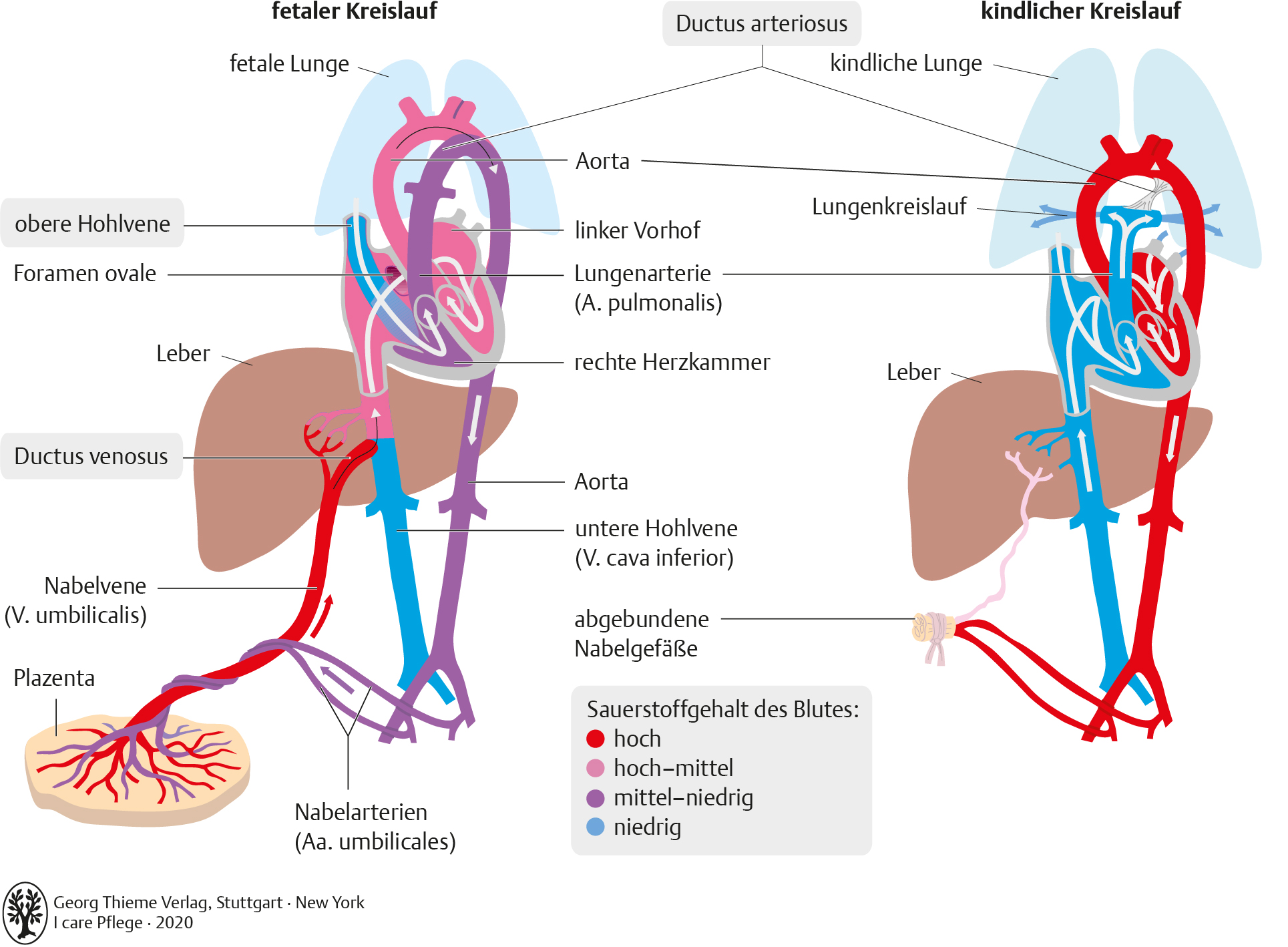 I care Pflege | Pflege bei speziellen Erkrankungen | Fetaler und kindlicher Kreislauf (Grafik)