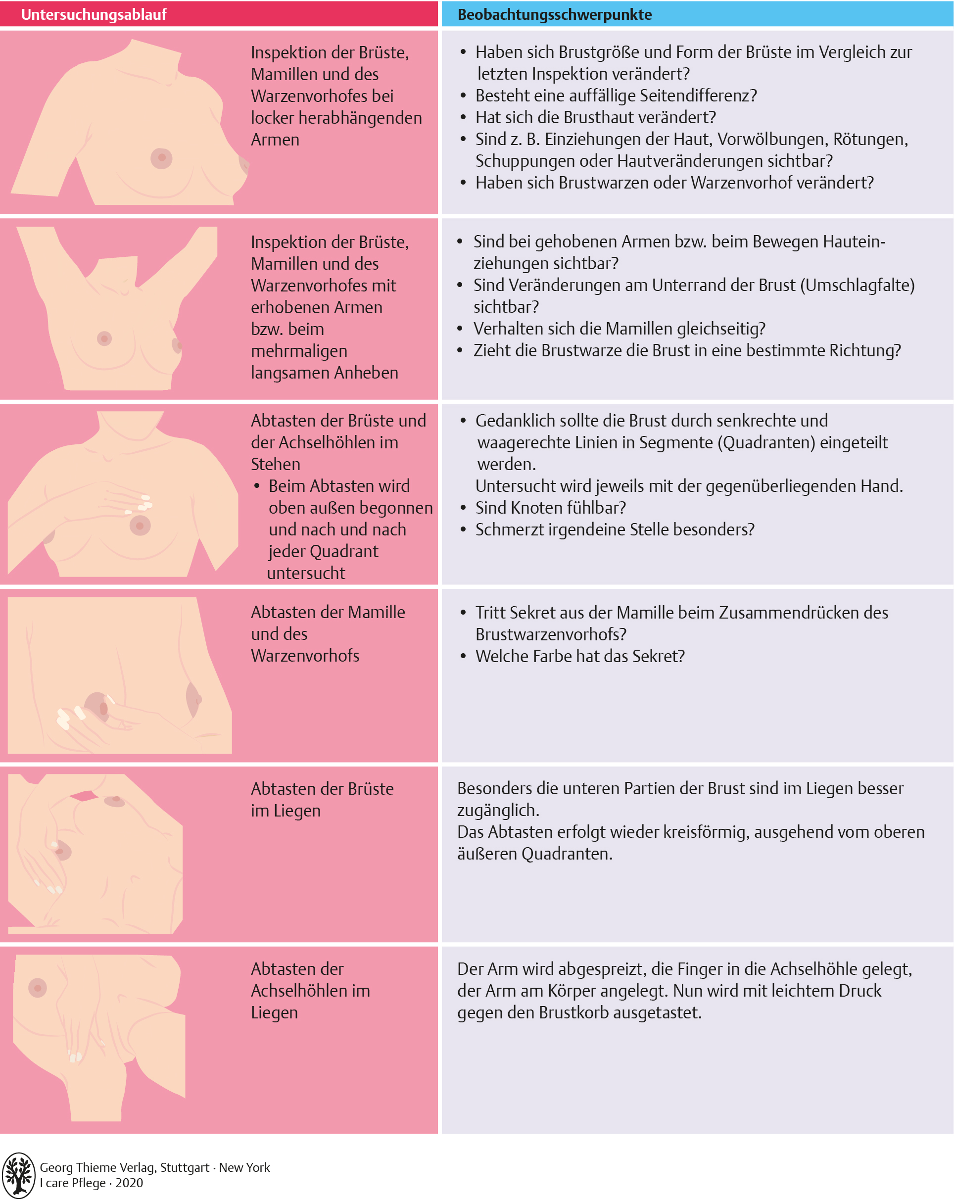 I care Pflege | Pflege bei speziellen Erkrankungen | Selbstuntersuchung der weiblichen Brust (Grafik)