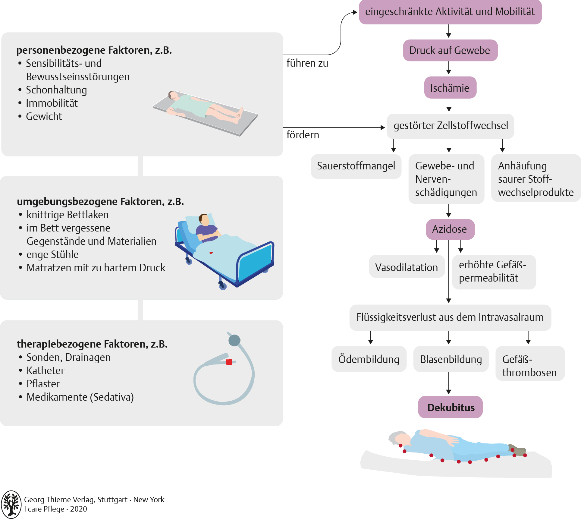 I care Pflege | Pflegebasismaßnahmen | Dekubitusentstehung (Grafik)