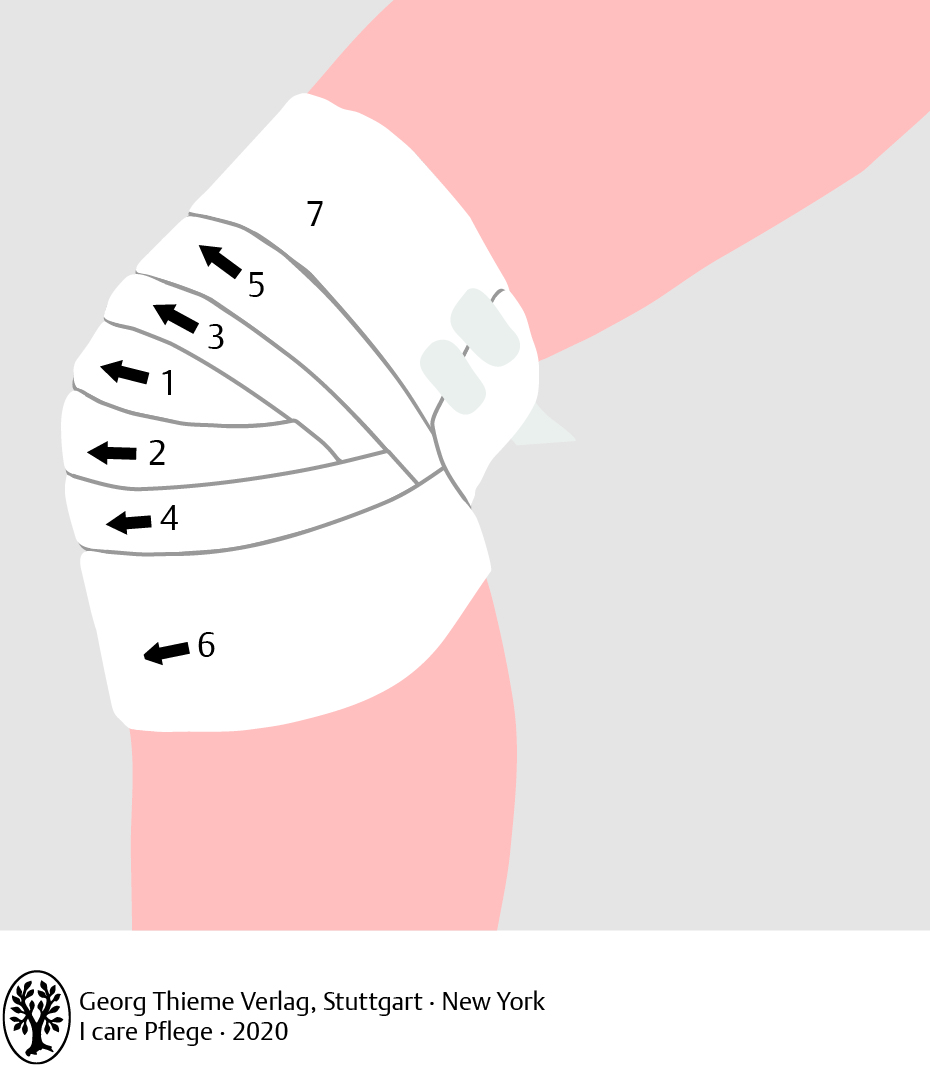 I care Pflege | Pflegetechniken | Schildkrötenverband am Knie (Grafik)