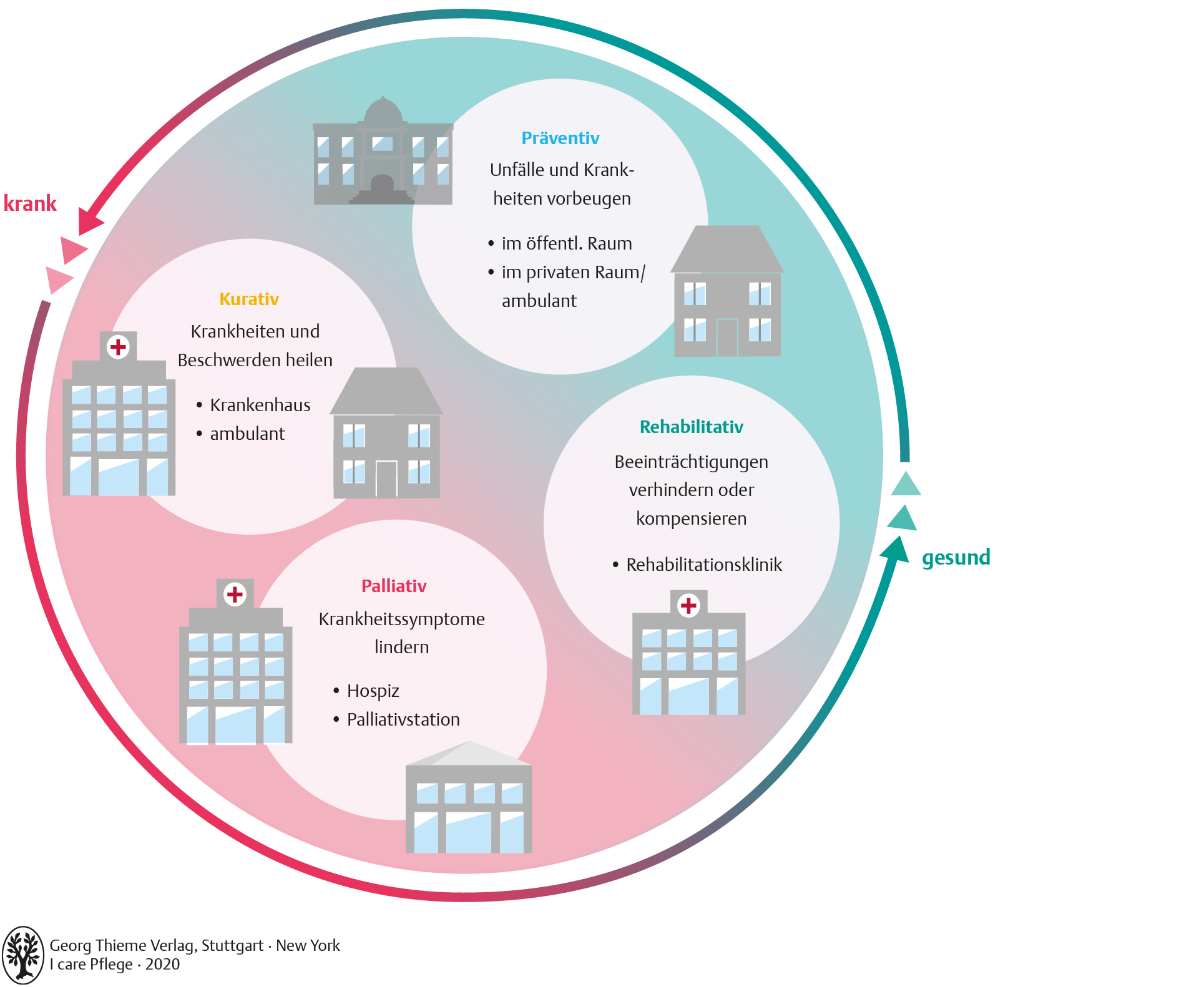 I care Pflege | Unterschiedliche Pflegesettings | Schwerpunkte pflegerischen Handelns (Grafik)