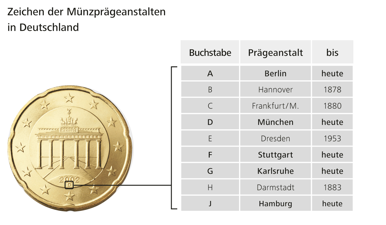 Zeichen der Münzprägeanstalten in Deutschland